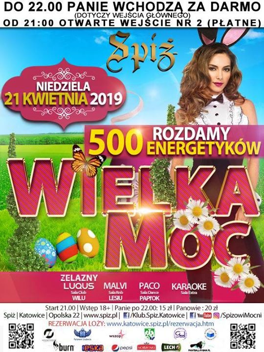 To będzie naprawdę Wielka Moc, podczas której poszalejecie na 4 salach, a energii dostarczać będzie Wam znakomita muza i pół tysiąca energetyków, które trafią w wasze ręce zupełnie za darmo!