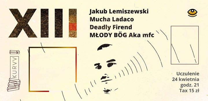 ?♀ znany i lubiany Jakub Lemiszewski- wszechstronny muzyk z Poznania. Jego muzykę charakteryzuje taneczna intensywność i brzmieniowa wielowątkowość. Na koncie ma kilka wydanych albumów (30 Minut, Hermes, Mixtape, Daaamn, Nielegal) oraz ponad trzysta (a może już 400?) koncertów z różnymi projektami w kraju i za granicą. Zgarnął liczne recenzje i wzmianki na takich portalach jak Pitchfork, Tiny Mixtapes, Dwutygodnik, Polityka. Progresywna elektronika? Footwork? Outsider house? MIDI symfonie? nigdy nie wiesz