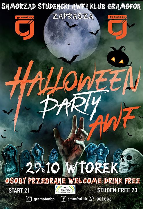 Samorzad AWF zaprasza na Halloween . Nie ma drugiej Takiej Imprezy w Roku! Zapraszamy na Wieczór Pełen Grozy! A wszystko w Studencki Klimacie!