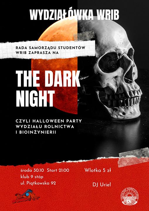 Jak co roku zapraszamy na wydziałówkę najbardziej roztańczonego, rozrywkowego i ciągle spragnionego imprezy Wydziału Rolnictwa i Bioinżynierii. Dla wszytkich studentów wejście za 5zł. Zapewniamy wspaniałą muzykę w klimat której wprowadzi Was Dj Uriel.