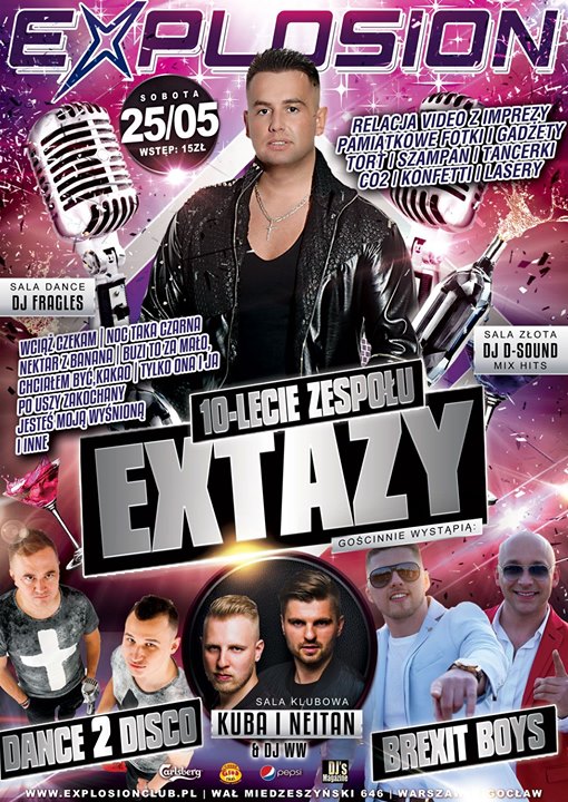 W sobotę 25 maja czeka na Was MEGA IMPREZA URODZINOWA zespołu EXTAZY !!!! Tej nocy Extazy świętuje 10 lecie powstania !!!