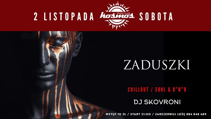 Zaduszki 6 lat temu Kiedy 02.11.2019 - 03.11.2019 21:00 - 04:00 Dodaj do kalendarza Pobierz ICS Kalendarz Google iCalendar Office 365 Outlook Live Gdzie Klub Kosmos Gdańsk Region pomorskie Zaduszki w Klubie Kosmos. Spokojne rytmy Chillout, Soul and R’N’B zagra DJ Skovroni. No related posts.